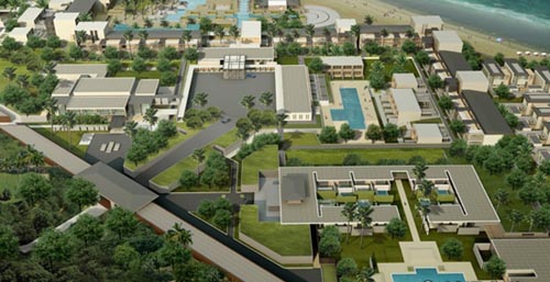 這座沙灘度假地剛剛開始施工,RMJM全面負責其的規劃、設計,預計在2010年初能夠開放。除了飯店和溫泉,這里還有174套豪華公共公寓和27套面對大海的別墅,占地20公頃,延海灘達到650米。所有的公寓都有觀景臺,從此可以看見大海和周圍的大理石山,而大多別墅都擁有私人游泳池和花園。