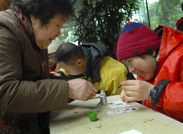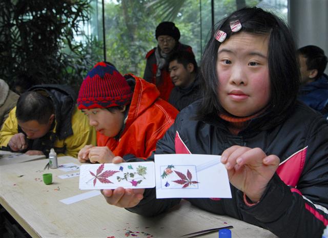 植物園里智障孩子學習制作壓花畫 (組圖)