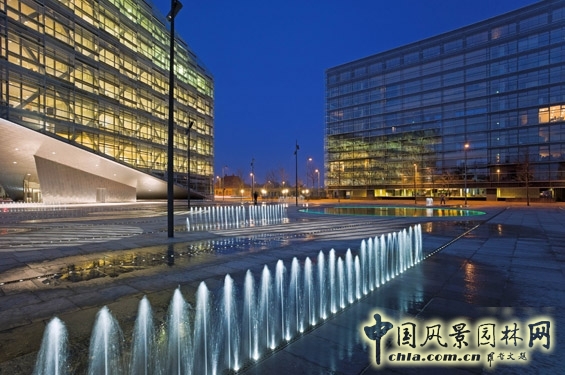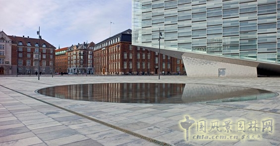 廣場中部的水池可以倒影天空變化的云彩,給行人和周圍建筑里的人一種瞬間景觀。