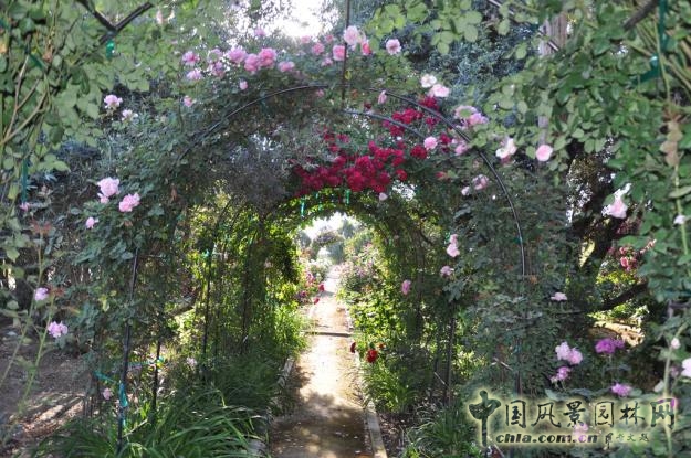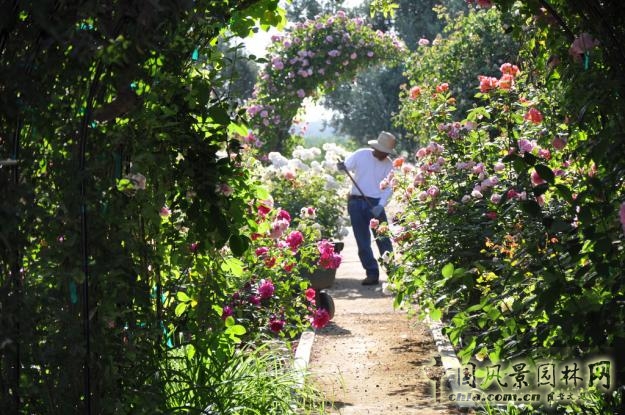 中國風(fēng)景園林網(wǎng)訊 這座近乎華麗的玫瑰園建在加利福尼亞橄欖工業(yè)中心的橄欖園里,位于世界上最大的農(nóng)業(yè)生產(chǎn)區(qū)圣華金河谷。