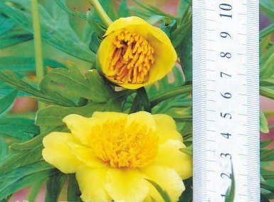 昨日上午,技術人員對盛開的珍稀品種野生黃牡丹進行數據測量。(如圖)