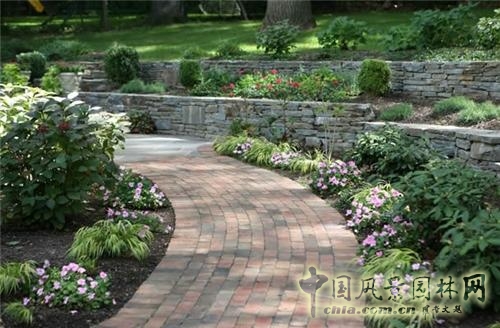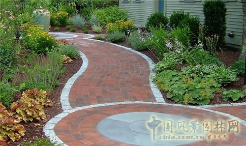 中國風(fēng)景園林網(wǎng)訊 磚塊人行道是田園風(fēng)格庭院的特征,并且粘土磚可以釋放出古典肅靜的氣息。依據(jù)要設(shè)計人行道的寬度、形狀和決定想要花紋圖案,也可以設(shè)計出磚塊材質(zhì)的正式和隨意的庭院小道。同時,磚塊可以和混凝土、石板及鵝卵石結(jié)合鋪設(shè)出一條獨特的庭院小道。