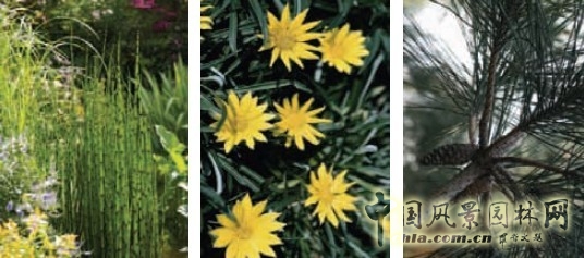 木賊Horsetail、菊花Gazania、黑松Black Pine
