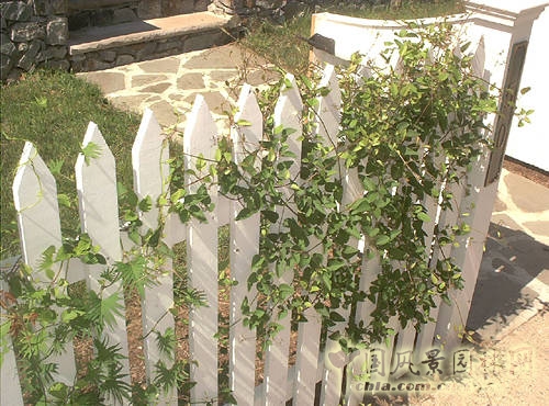 藤本植物攀援在籬笆上,營造一種溫馨的感覺。