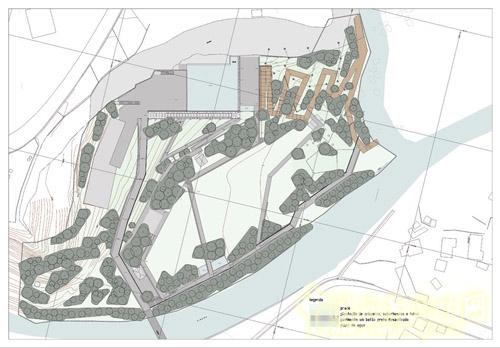 此外,作為休憩空間的公園還是火山博物館不可或缺的一部分。博物館建筑的內部充滿的是火山爆發的氣氛,而公園則表現出與此相關的水文變化過程和植被狀況。水和植被成為了公園的構成要素,流水的特點形成了這些有趣的空間構造:溪流,被抬高的運河和水池,特定的植被覆蓋的平臺。在這,植被成為了生態動力學的最好詮釋。