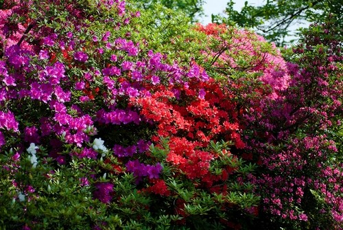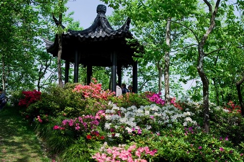 與牡丹園隔路相望的杜鵑園又是一派春色滿園的熱鬧景象。現(xiàn)在杜鵑園有80多個(gè)品種,近萬株的杜鵑次第開放,萬紫千紅,其中有不少珍稀名貴品種,如猴頭杜鵑、鹿角杜鵑、滿山紅、錦繡杜鵑、云錦杜鵑等多種原生杜鵑,以及“紫金冠”、“紅寶石”、“火舞”等品種杜鵑。滿山杜鵑熱情奔放,使得路人紛紛留影。