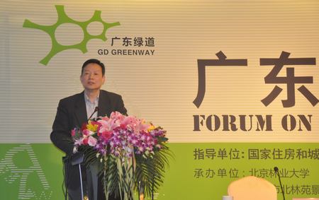 住房和城鄉(xiāng)建設(shè)部副部長仇保興為本次講壇作主旨報(bào)告,他認(rèn)為綠道建設(shè)是一項(xiàng)踐行科學(xué)發(fā)展觀,實(shí)現(xiàn)保護(hù)生態(tài)與改善民生、發(fā)展經(jīng)濟(jì)共贏,確保可持續(xù)發(fā)展的嶄新實(shí)踐。廣東省人民政府副省長許瑞生在論壇上對廣東綠道網(wǎng)建設(shè)進(jìn)行了介紹,強(qiáng)調(diào)其已經(jīng)成為珠三角地區(qū)完整、連續(xù)、可達(dá)的風(fēng)景園林生態(tài)廊道。