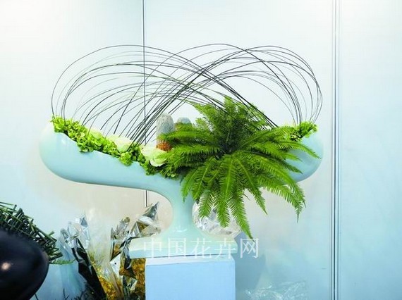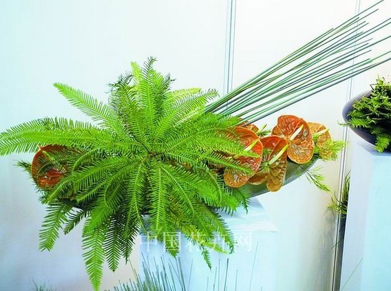 “澳洲剛草有很多種,有的切面是四方棱形,又脆又硬,有的切面是扁形,很柔軟。在俄國和日本,花藝師會(huì)將剛草整把彎曲后做造型,以花來點(diǎn)綴,而不僅僅是用它拉出線條。伸縮切面是圓的,很細(xì),有韌性,可以完成八字形做新娘胸花。長達(dá)兩三米的吉密葉,特點(diǎn)是寬、扁、長,做酒店大堂花或酒會(huì)大型作品時(shí)用它“打底”非常棒。”說起這些葉材,考察過多個(gè)國家切葉市場(chǎng)的王興國滔滔不絕。謝明也向記者表達(dá)了他的感受,“澳洲野生葉材會(huì)給人耳目一新的感覺,它們新鮮、干凈又環(huán)保。由于其更具柔軟性,因此可塑性很強(qiáng),很容易激發(fā)花藝師的創(chuàng)造靈感。”