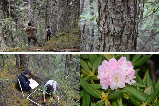 考察隊(duì)在沿途中調(diào)查了白馬雪山目前的森林現(xiàn)狀,并確定在埡口方向設(shè)立永久性小樣地。樣點(diǎn)為海拔4100-4200m的長苞冷杉、杜鵑林群落,包括3個(gè)20m*50m的樣方、喬木樣方(10m*10m)、灌木樣方(2m*2m)和草本(1m*1m)樣方各共計(jì)30個(gè)。此外,從當(dāng)?shù)匾N遷移了杜鵑屬植物、報(bào)春屬等植物,共計(jì)15個(gè)種450個(gè)個(gè)體。