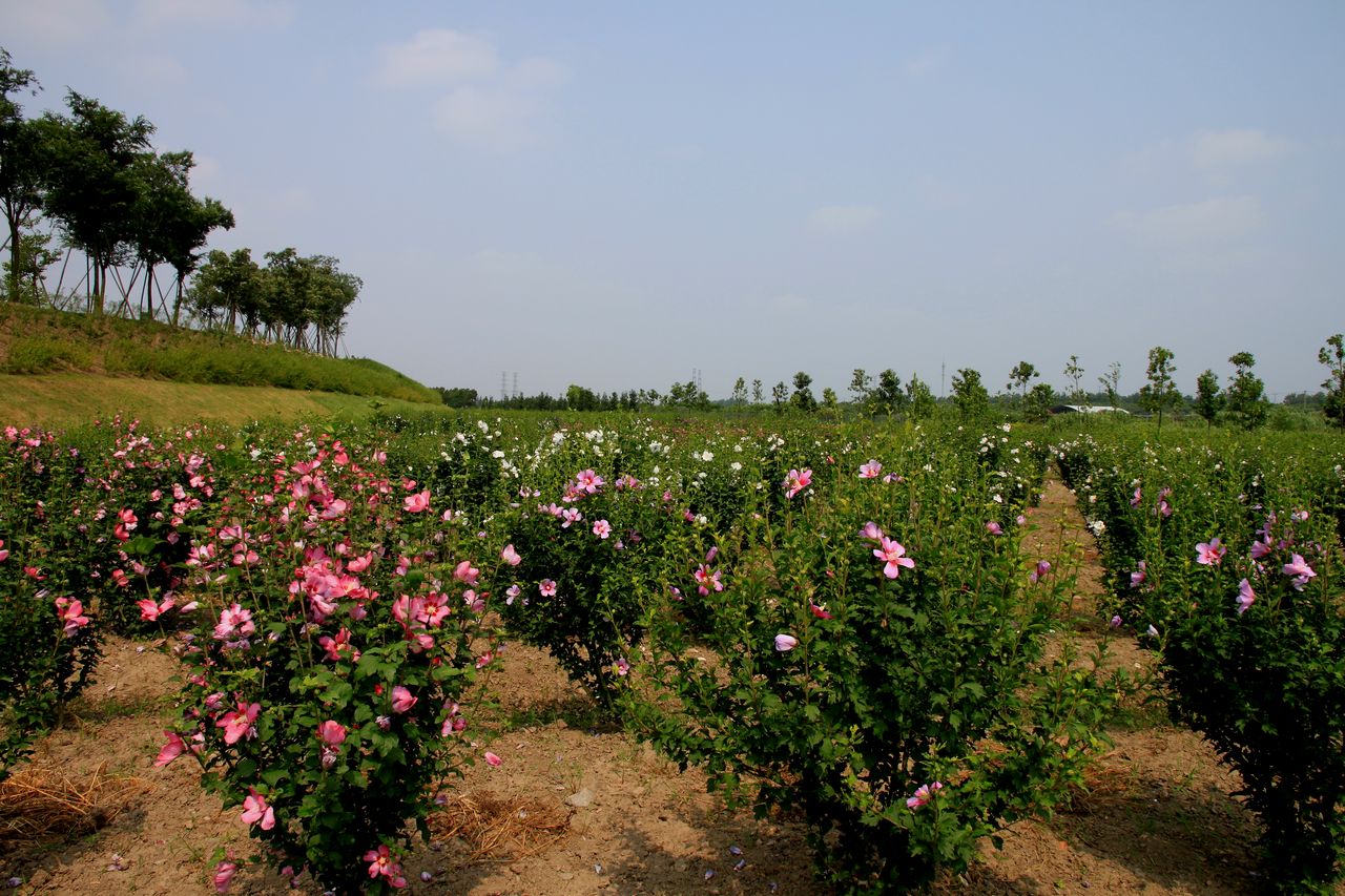 位于辰山北側綠環外的引種苗圃開放區,大片種植著木槿的不同品種,包括‘白綢’、‘粉紅’、‘紅心’、‘海琳’、‘戴安娜’、‘玫瑰紅’、‘哈馬布’、‘阿佛絡狄’、 ‘俄羅斯紫羅蘭’等品種,現在陸續進入了花期,被稱之為花的海洋也不為過:熱情似火的紅、粉嫩可愛的粉、純潔無暇的白、清新爽氣的藍,花瓣有單瓣、重瓣;花色還有純色、混色,讓人領略到無與倫比的視覺享受。