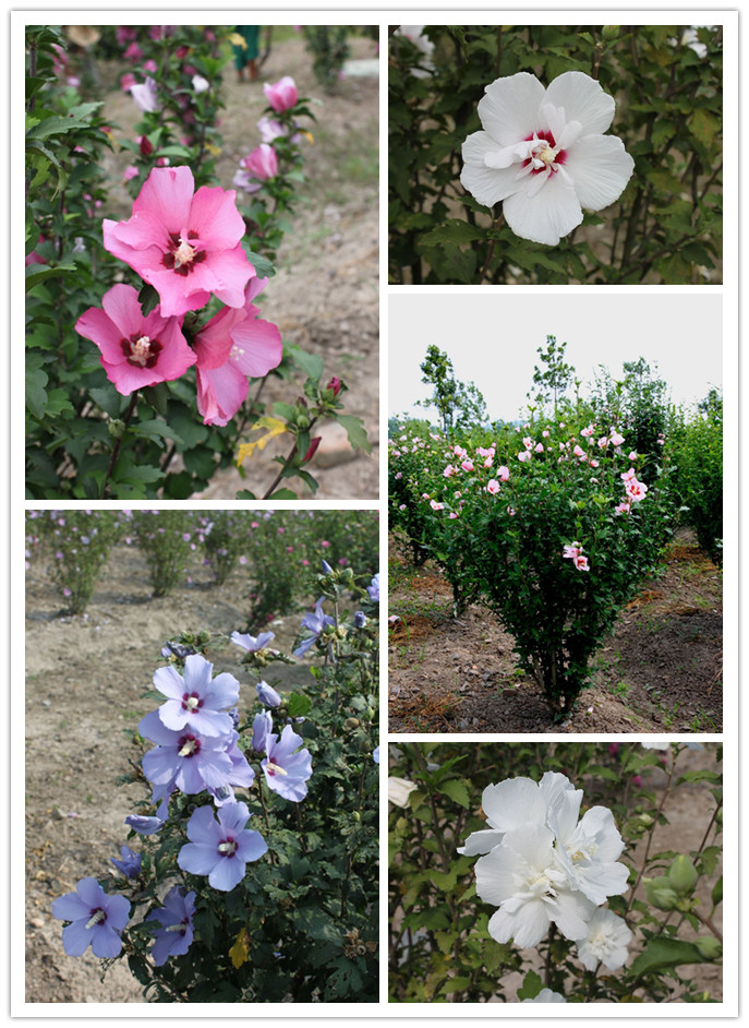 木槿為錦葵科木槿屬,落葉灌木, 高可達3-4米。葉菱狀卵圓形,夏秋開花,花單生葉腋,花冠鐘形,直徑約4到10厘米。整株植物可達2到4米高。木槿的花,朝開暮謝,一朵花只開一天,花一朵接一朵陸續綻放,花期很長,從6月份一直到10月份都開放,因此在韓國被稱為無窮花。在全國各地、南北兩半球熱帶、亞熱帶地區廣泛栽培。