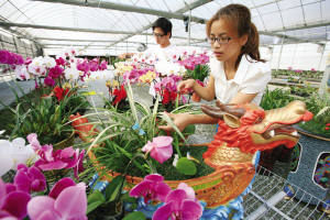 近日,在浙江海峽兩岸蘭花科技園的花卉大棚里,工作人員在忙著插種龍舟花卉盆景,供應端午節日市場。今年是農歷龍年,浙江海峽兩岸蘭花科技園的花卉種植技師在端午節前夕,設計開發出多款龍舟形狀的盆栽花卉新品,一推向市場便十分搶手,成為市民端午佳節居室點綴和贈送親友的主力盆花。