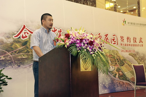 天開園林總裁陳友祥在第九屆中國(北京)國際園林博覽會企業捐建設計師展園捐建儀式上