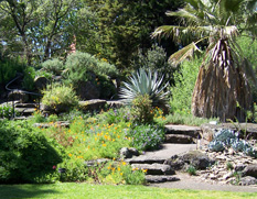 加利福尼亞和澳大利亞有很多類似的景觀和氣候,這里引種了很多來自加利福尼亞的植物,穿行其中,能發現有干旱沙漠、海濱風光、灌木叢林等。栽植的植物有熊果屬植物、景天科植物、加州丁香樹、龍舌蘭等。