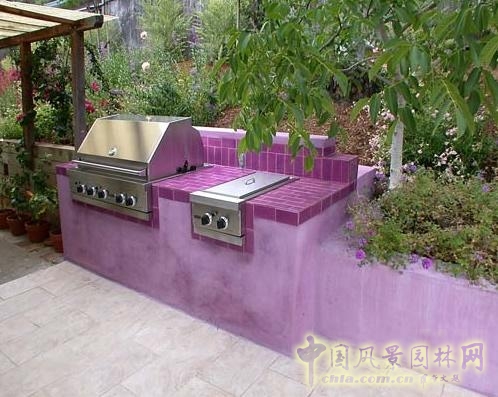 戶主通常一定是喜愛挑戰新事物的,這兩種紫色應用到這里形成很顯眼的效果。能夠想象到假日這里的生動場面。選擇這種生動顏色有兩個理由:通過增加垂直面色彩,來形成焦點的效果;同一顏色應用到不同的結構,從而可以表現統一的整體效果。但需注意,在戶外景觀中應用特色顏色時,需考慮鄰居,避免每日暴露在鄰居的眼前,造成對他人的不適感影響。