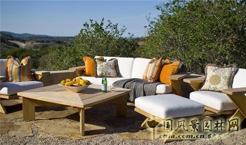 沙漠景觀的露臺家具風格自由,可以是座椅圍繞的吧臺,也可以是大空間的聊天場所,還可以是適合聚會的大餐桌。在材質的選擇上,要避免鐵質的座椅,因為沙漠環境中,炎熱太陽的照射會使座椅特別發燙。可以選擇柳編或木質家具,但也要避開太陽直射,最好能夠感受到微風。