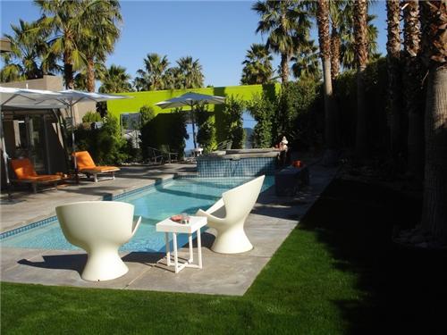這是位于棕櫚泉市的擺設,代表中世紀的現代裝飾,旁邊是人工草坪