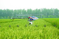 8月26日,三架無人直升機在隆平高科位于湖南省岳陽市君山區的制種試驗田里進行了一場特殊的“比武”:通過來回低空飛行時機翼攪動形成的風力幫助超級雜交稻“兩優1128”的父、母本之間完成授粉,同時開展噴灑作業。“記分員”則由試驗田里一排傳感器擔任,研究人員利用其對風速、風場及母本花粉密度等參數進行測定,以評估輔助授粉效果。