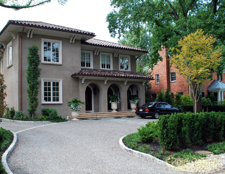 另一個挑戰是,這個場所有一個主要的通過低洼風景區的沼澤地排水道。通過提高水池到車庫以上兩英尺,解決了這個問題。這使我們重定向水池和車庫背后的水的流向。我們還在水池上面安裝了一個集水池,在車道下接入一個直徑8英寸管子,連接到鄰近景觀的雨水溝。