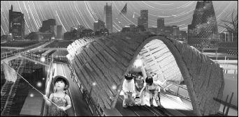 設(shè)計(jì)也考慮了實(shí)際問題。那里房屋中間有很多條火車道經(jīng)過,充斥著各式各樣的汽車和電麻木。孩子們上學(xué)都要冒很大的危險(xiǎn)。他們?yōu)橹裎菰O(shè)計(jì)了多個(gè)落腳點(diǎn),建在樓頂上四通八達(dá),學(xué)生們甚至可以通過竹橋從學(xué)?;丶摇?/p>