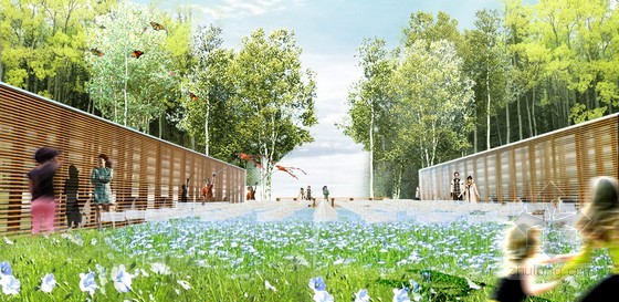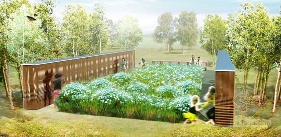 風,是大自然中具有神秘能量的存在,人們能通過其他事物的變化和聲音感知它的存在。而居住在魁北克的農民用亞麻編織成的花結向人們展示這種神奇的事物,他們用風來表現設計。這個景觀同時也體現了具有當地特色的亞麻作物。花園四周是“風墻”,里面安裝有定式風扇,花園中央種植著亞麻作物。植物生長初期,花園里有亞麻纖維制成的小旗,通過擺動告知人們風向和風力,同時展示亞麻的價值。隨著時間推移,田地里的作物長高,作物、風與訪客之間形成有趣的關系。在這個花園里,風作為設計的主角向人們展示了它獨有的魅力。