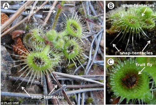 glanduligera毛氈苔具有非常敏感的觸須,能夠將昆蟲送到“消化嘴部”。科學家觀測這種植物之后強調稱,這種一觸即發的快速彈射陷阱結構可能是植物世界中最快的捕食策略。
