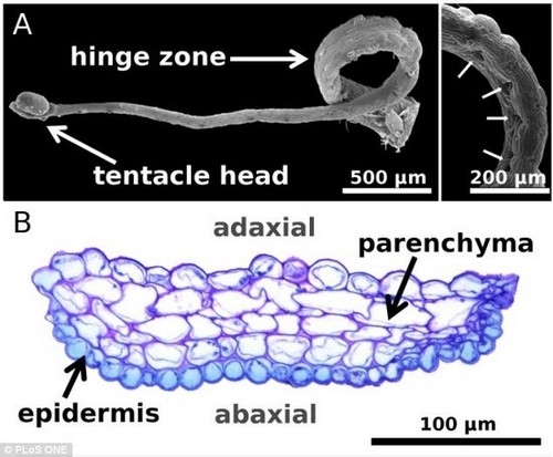 植物并不具有肌肉組織,但是科學家認為這種植物中的水份移動將使一些細胞膨脹,一些細胞收縮,從而形成一種初級的液壓機制。
