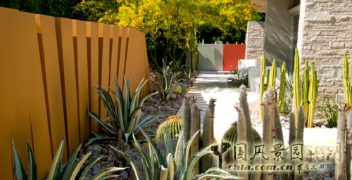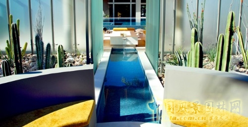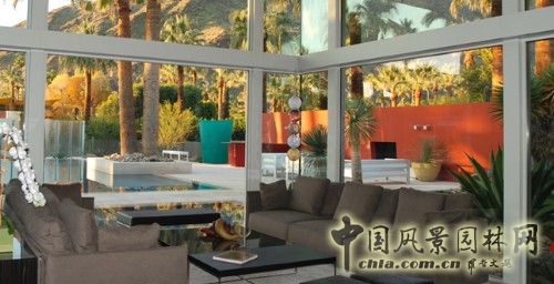 項目的整體主要表現水和光兩個主題。戶外的絕大部分場所都有對近處San Jacinto山的極佳視角,同時各空間場景自然過渡,以及滑動玻璃門的應用都利于室內外空間的自然連接。每一個房間都通向一個花園。依托于各個房間,花園的視角也不斷變化。大面積的水池,以及水池面上倒影的山脈、沙漠植物、房屋、座椅,甚至人影,沙漠植物與水景的搭配,都具干練簡潔的特點,但濕度完全不同的特征,使搭配出的設計更具獨特性。