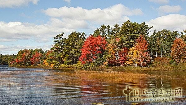 在阿卡迪亞國家公園,游客可以在波光粼粼的池塘邊花上一個上午的時間,凝視五彩繽紛的奇妙海綿、??⒑P且约盀I螺;也可以去森林里遠足,森林在凱迪拉克山山頂附近,遍布著云杉、白樺、紅楓、還有搖曳多姿的白楊,跟加拿大的森林很相似。秋天的阿卡迪亞雖已過了旅游旺季,景色卻依然迷人,漫山的彩林很是養眼。不過眼睛看到的誘人的彩林,在鏡頭中卻表現不出來。正象看到眼里的美景,找不出合適的言語來表達一樣。