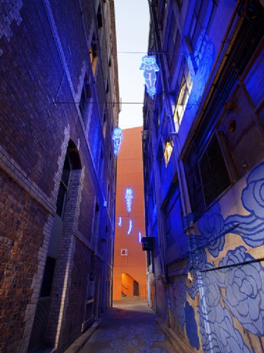ASPECT Studios worked closely with artist Jason Wing to ensure full integration of his public art installation Between Two Worlds. The brightly coloured work includes painted elements, granite etching and site specific lighting which honour both the site's history and current community.