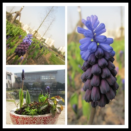 葡萄風(fēng)信子學(xué)名Muscaris botryoides,又名藍(lán)壺花、葡萄百合,是這幾年從歐洲引進(jìn)的優(yōu)良早春觀花地被植物,為百合科藍(lán)壺花屬多年生草本植物。小鱗莖卵圓形,葉絨狀披針形,叢生,植株矮小。花莖自葉叢中抽出,圓筒形,長(zhǎng)約15cm,上面密生許多串鈴的小花,花梗下垂,花有青紫、淡藍(lán)等。高10至15厘米,頂端簇生10至20朵小壇狀花,整個(gè)花序猶如藍(lán)紫色的葡萄串,秀麗高雅。花期2月底至3月。葡萄風(fēng)信子和郁金香等球根花卉一樣要夏季休眠。