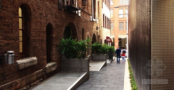 悉尼南方的娛樂(lè)區(qū)奧爾濱的建筑,例如寫(xiě)字樓,藝術(shù)館,旅館等,已經(jīng)從傳統(tǒng)的磚質(zhì)結(jié)構(gòu)變成了混凝土以及不銹鋼材質(zhì)?;芘c座位露臺(tái)的融合打破了車(chē)道的縱向空間,更好的將電影院墻邊的用餐區(qū)域與其他環(huán)境均勻的分開(kāi)。原有的花崗巖鋪砌的結(jié)構(gòu)被鑿出一道裂痕,露出沙礫的邊緣,看上去有一種原生態(tài)墻壁的感覺(jué)。防火疏散門(mén)的門(mén)洞被轉(zhuǎn)換成為‘防火門(mén)美術(shù)館’,舉辦一系列由著名藝術(shù)家羅琳羅斯威爾創(chuàng)作的不銹鋼藝術(shù)品。這些藝術(shù)品由不銹鋼光柵框架。新的照明系統(tǒng)為戶外用餐創(chuàng)造了氛圍。運(yùn)動(dòng)走廊已轉(zhuǎn)換成一個(gè)活躍的公共空間,人們可以在這里散步,來(lái)感受這里獨(dú)特的氣息。