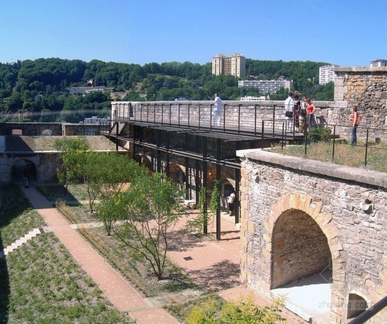 在里昂市,珍妮城堡坐落在索恩河左岸的石質岸邊。這個工程結合了新式的公立學校,并且用非常漂亮的建筑景觀成為當地的一道獨特的風景。在這個城堡的中心,d’Armes宮殿是一個大的石質建筑群,每一個部分都是由石灰巖建成。作為這個城市的窗口,這個地中海式花園展現出一種地中海式的景色,包括常綠的樹木和各種花草。各種不同風格的花園被墻連接起來,就像一個個的同心圓一樣。這樣從上方俯瞰,可以看到各種各樣的風格景色。在每個區域,都有各自的特色,不同的文化氣息。這里生長著各種各樣的樹木,有猶太鳳梨,大的景天屬植物,皂莢樹,紫藤和各種花草,美不勝收。