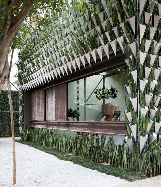 這座生長著的墻體與工業鍛造的鋼鐵表面形成了鮮明的對比和贊譽。在垂直花園內部,自然光從大廈的開放空間中進來,然而外部的電動方格圍欄使得陽光的控制更加容易。