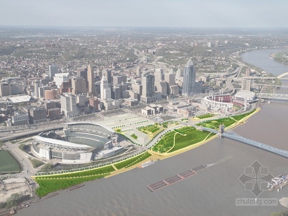 菲利斯•W•斯梅爾濱河公園位于辛辛那提市中心,它沿俄亥俄河建造,占地約0.13平方公里。作為沿河公園群中最大的一座,這座公園緊密地與周?chē)甏蟮某鞘械貥?biāo)聯(lián)系在一起,它與羅布林大橋、國(guó)家地下鐵路自由中心、保羅•布朗體育場(chǎng)、大美國(guó)棒球場(chǎng)相映生輝。通過(guò)河岸通道的建設(shè),濱河公園如項(xiàng)鏈般串聯(lián)起了河畔的公共空間,它將遍及全州的休閑小道和自行車(chē)系統(tǒng)拉攏過(guò)來(lái),并重新將辛辛那提市中心與俄亥俄河連接起來(lái)。佐佐木在公園上進(jìn)行的設(shè)計(jì)對(duì)附近的羅布林大橋——一座充滿(mǎn)歷史印跡的建筑符號(hào)——來(lái)說(shuō)簡(jiǎn)直就是絕佳伴侶,二者之間的區(qū)域布置著一系列大型聚會(huì)場(chǎng)地、靜態(tài)休憩場(chǎng)所和規(guī)劃項(xiàng)目供人使用。
