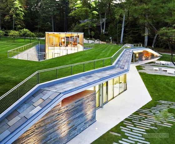 這座華麗的綠色屋頂游泳館位于紐約的佐治湖畔,它由GLUCK+事務(wù)所設(shè)計(jì)。這個(gè)團(tuán)隊(duì)力圖將這座建筑與景觀完美地融合在一起,于是他們努力將游泳館設(shè)計(jì)得很低調(diào),并用翠綠的草皮覆蓋在它的表面上。