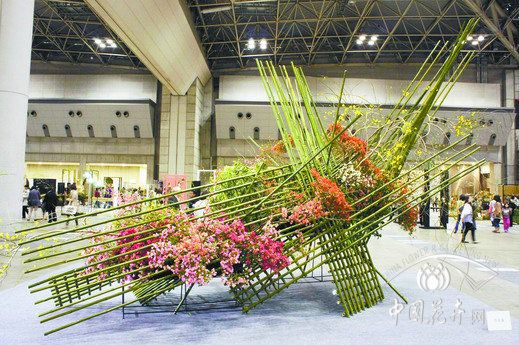 圖1“花之夢日本杯花藝大賽”上草月流展出的大作,經典地詮釋出幾乎所有直線的造型美。