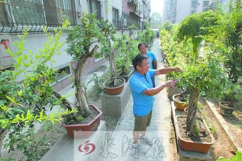 “2005年,俺家搬到煤倉北街5號院2號樓1單元1號時,樓后面雜草叢生的空地垃圾遍地,臭氣撲鼻,從不敢開窗戶。”住在李金山家對門的鄰居劉文枝老人說。2007年春天,李金山在物業和社區的幫助下,清理了2號樓后面的垃圾和雜草,開始大規模培育盆景。