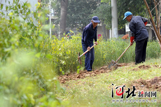 石家莊園林工人節日堅守崗位:美化環境