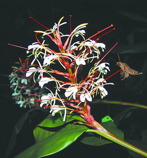 同時,四倍體毛姜花花期為2月底至4月初,而二倍體小毛姜花為9月底至11月中旬,完全實現(xiàn)了生殖隔離。研究還發(fā)現(xiàn),這兩個種在花壽命、開花時間、傳粉者、繁育系統(tǒng)等方面產(chǎn)生了顯著差異。四倍體毛姜花具有較長的花壽命,分泌較多的花蜜,每個花序具有較多的花和更多種類的傳粉者。二倍體小毛姜花為自交不親和,四倍體毛姜花則是完全自交親和。這表明多倍化使四倍體毛姜花能占領新的生境,分布到更廣的范圍。