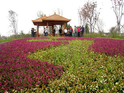 “百花園”建設遵循“以人為本,綠色生態,自然和諧”的生態建設理念,堅持環保、節能原則,大量運用鄉土樹種、花卉,各景區通過不同的植物與花卉的完美結合,充分展現自然與生態美感,讓人們在享受花卉色、香、韻、姿的同時,盡情品味其中的文化與情感,同時在公園建筑、道路鋪裝、園區照明、給水保水等工程中,注重生態環保理念,廣泛使用環保節能材料和技術,實現了花、草、樹、水與人文景觀合理搭配與交融,是集生產科研、科普教學、物種收集、觀賞休閑于一體,獨具北方特色的花卉專類園。