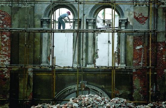 湖南和平起義紀(jì)念地中山紀(jì)念堂拆了,長(zhǎng)沙海員俱樂部拆了,循道會(huì)教堂和老交通銀行拆了,蘇州會(huì)館和鴻記錢莊被“易地保護(hù)”了。