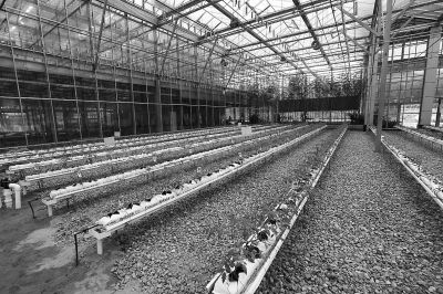 昨日記者在省農科院海峽現代農業示范園內看到,在總高兩層的智能溫室大樓內,地面一層擺放著鐵架,這些架子距離地面約50厘米,架子上面種滿植物,以各品種玫瑰花和西紅柿為主。