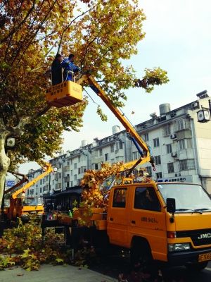 蘇州目前有行道樹近3萬株,主要品種有:香樟、女貞、杜英、桂花、法國梧桐、重陽木、合歡、銀杏、櫻花等。冬季樹木養(yǎng)護工作將持續(xù)整個冬天,期間綠化工人還要進行預防病蟲害的工作,在冬季突發(fā)雪災后及時對常綠樹做除雪工作等。需要提醒市民的是,行道樹修剪工作區(qū)域有一定危險,請大伙盡量繞行。