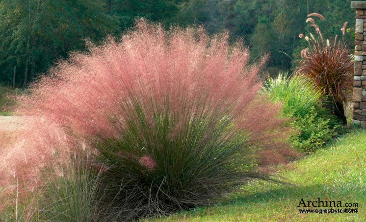 將粉黛亂子草用于組團種植,與其它植物材料搭配使用也是一種不錯的選擇。細密的質感、明亮的色彩可以在花卉不多的秋季凸顯出來,與秋季絢爛的色葉相得益彰。適用于公園中的小型組團空間或住宅、酒店、商業景觀中的中小型空間。