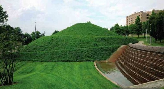 哈格里夫斯的作品有相當一部分是“熵化”,降質場地的整治項目,這些場地大多是荒棄的舊工業場地,垃圾填埋地等。如拜斯比公園的原址是18M厚的垃圾埋場燭臺角文化公園的原址是一個建筑垃圾填海筑就得人工半島。考慮基址的現實,運用藝術化的手段營造了公共活動的空間,表現出對歷史和現實的雙重尊重,表現出對后工業社會的獨特的認識。