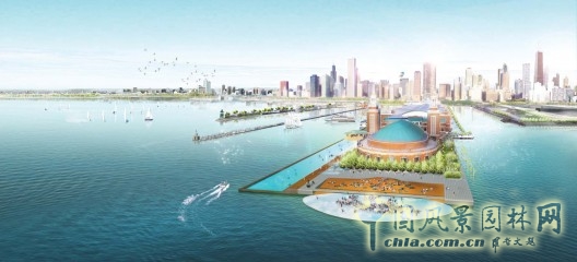 詹姆斯·科納事務所(JCFO)的芝加哥海軍碼頭改造設計為我們展現了一片包含湖泊,文化以及壯麗景觀的當代公共空間。設計中注重人與人之間的聯系并試圖在碼頭上創造出一種愉悅的社會體驗。整體設計以簡約綠色的南部碼頭漫步道為基準進行展開。漫步道連接碼頭與城市中的濱湖大道,由一系列的主題空間串聯起來。每個空間都有其獨特之處。設計豐富了碼頭上不同類型游客的游覽體驗,并且將碼頭打造成了芝加哥新一代具有紀念意義的,真正的可持續發展空間