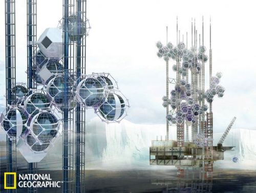 這項名為“水循環”的概念設計計劃對海上鉆井平臺進行再利用,將其轉化為一個水處理廠,可以將海水淡化為可供飲用的水源。這樣一來,原本用來開采海上化石燃料的廢棄建筑就搖身一變,重新有了它的價值——海水淡化工廠。一個個球形模塊可以被用來蒸餾提純海水并儲備制成的淡水,隨后將其供應給貧水國家。根據給出這一設計的南非團隊的說法,這樣一座平臺還可以為長期在此進行研究工作的科學家提供維持生活的條件。