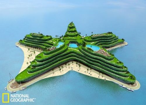 這座建筑預(yù)計(jì)將于2014年開幕。這就是坐落在印度洋馬爾代夫海岸外的綠海星浮動(dòng)酒店和會(huì)議中心。這個(gè)島國(guó)是全世界海拔最低的國(guó)家之一,它也因此成為全世界受到全球變暖和海平面上升影響最嚴(yán)重的國(guó)家之一。設(shè)計(jì)師的初衷是讓整棟建筑和這里周圍的自然景色融為一體,這間酒店將可以容納超過800名過夜旅客以及2000名會(huì)議與會(huì)者。在設(shè)計(jì)中設(shè)計(jì)師充分考慮了節(jié)能要求,整棟建筑的低排放性體現(xiàn)了馬爾代夫作為一個(gè)國(guó)家對(duì)抗全球變暖的決心。毫不意外的,組織者會(huì)認(rèn)為綠海星會(huì)議中心是將來召開對(duì)抗全球氣候變化的最佳會(huì)議地點(diǎn)。