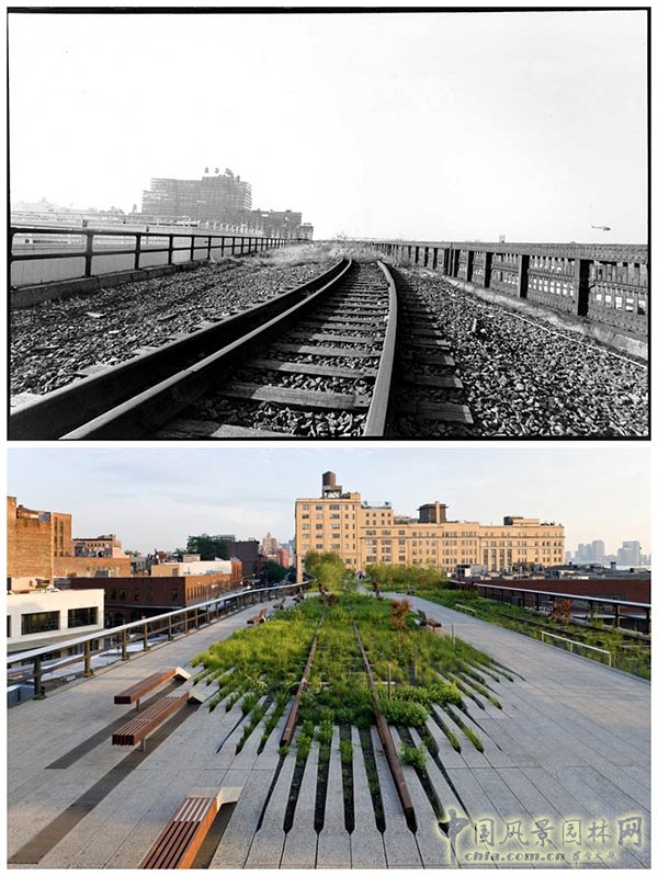 HighLine的改造項目堪稱鐵路改造綠道的經典項目之一,相信一些建筑學子常年研究的課題便是它。這座高架貨運鐵路在1980年停止使用,廢棄了將近30年,而后在“拆與不拆”的爭議后,改造為現在我們所看到的HighLinePark。